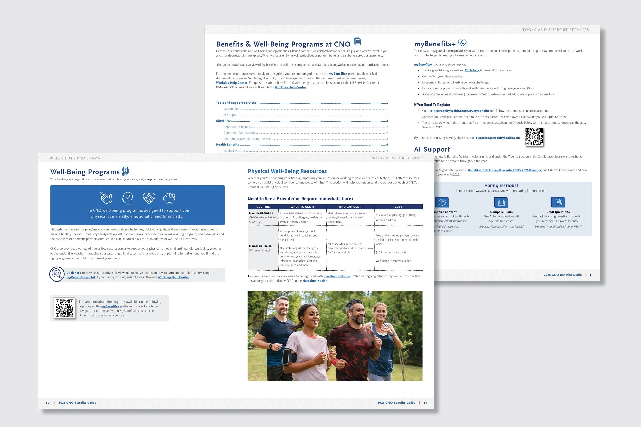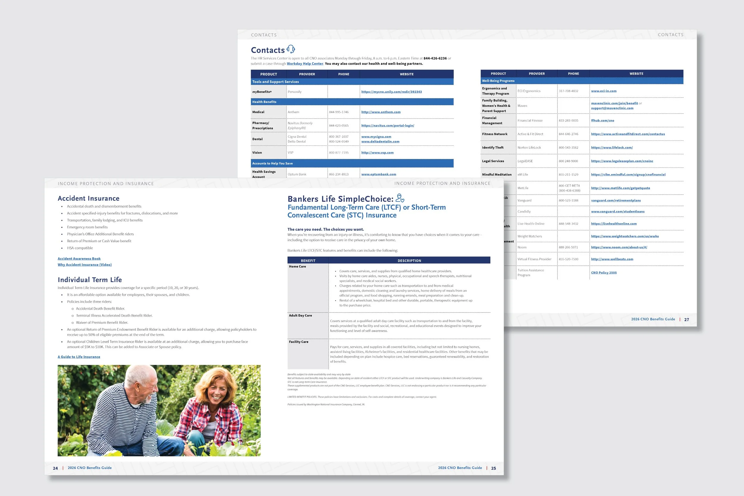 CNO Financial Group, Inc. is an American insurance holding company that develops, markets, and administers health, annuity, and individual life insurance products. For their benefits communications package, I designed a custom cover that aligned with their brand aesthetic—clean lines, ample white space, and a modern, structured feel. That design language continued throughout the layout, using icons, callout boxes, and distinctive visual elements to make dense content more engaging and easier to navigate.